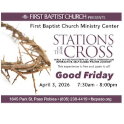 Sunday Services 10:45 am – 12:00 pm FBC Ministry Center 1645 Park St Paso Robles CA DetailsDirections