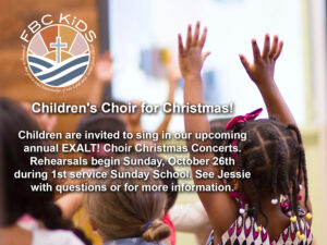 Children’s Choir rehearsals beging sunday, october 26 during the 9am sunday school hour.